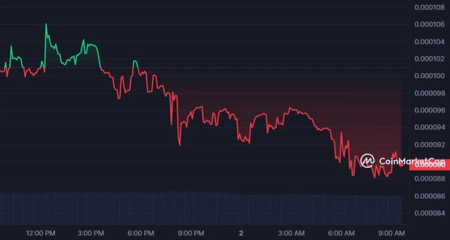 Meanwhile, the price of the token has significantly dropped today according to data from CoinMarketCap. Over the last day, the price has dipped by over 11% causing it to add one more zero to its value, resting at $0.00008925.